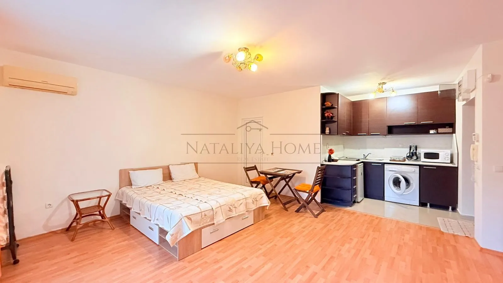 Предлагаме за продажба светъл едностаен апартамент разположен в старата част на Поморие, в тиха и предпочитана зона с отлична локация. Имотът се намира на втори жилищен етаж, с обща площ от 46.37 кв.м и е функционално разпределено. Състои се от просторна стая собособена с кухненски бокс и кът за спане, баня/WC и тераса, която осигурява допълнително усещане за пространство и комфорт.Жилището се предлага напълно обзаведено и оборудвано, готово за нанасяне или отдаване под наем без необходимост от допълнителни инвестиции.Сградата е добре поддържана, с контролиран достъп и удобен асансьор. Акт 16.Апартаментът е с отделни партиди за ток и вода. Годишната такса поддръжка е в размер на 135 евро.В непосредствена близост се намира плажната ивица, която е на пешеходно разстояние, както и централната част на града с разнообразие от магазини, ресторанти, заведения, аптеки и банкови офиси. Районът предлага добра комуникация и лесен достъп до основни пътни артерии, както и редовен градски транспорт. Съчетанието от спокойствие, морска близост и бърз достъп до центъра прави локацията изключително атрактивна както за лично ползване, така и за инвестиция с цел отдаване под наем.Отлично предложение в утвърден морски курорт с добра инфраструктура и целогодишен интерес.