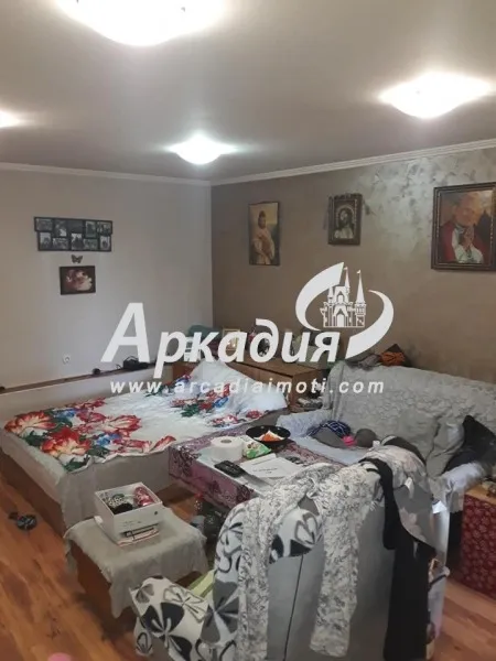 ОФЕРТА-24590;Предлагаме Ви етаж от къща с площ от 76кв.м, състоящ се от хол, кухня с трапезария ,спалня, тераса/която не влиза в обявената площ/, 1/2 идеална част с площ от 210 кв.м., сутерен със стая от 16 кв.м. Във вътрешния двор на имота е ситуирана втора къща. На първо ниво са разположени: хол с кухня, баня, тоалетна, коридор. Втори етаж спалня с тераса, баня и тоалетна с площ от 75кв.м. В имота има магазин с лице към улицата. Имотите се продават с обзавеждането. За огледи: Атанас Копарански - 0879056451 Вижте още наши предложения www.arcadiaimoti.com