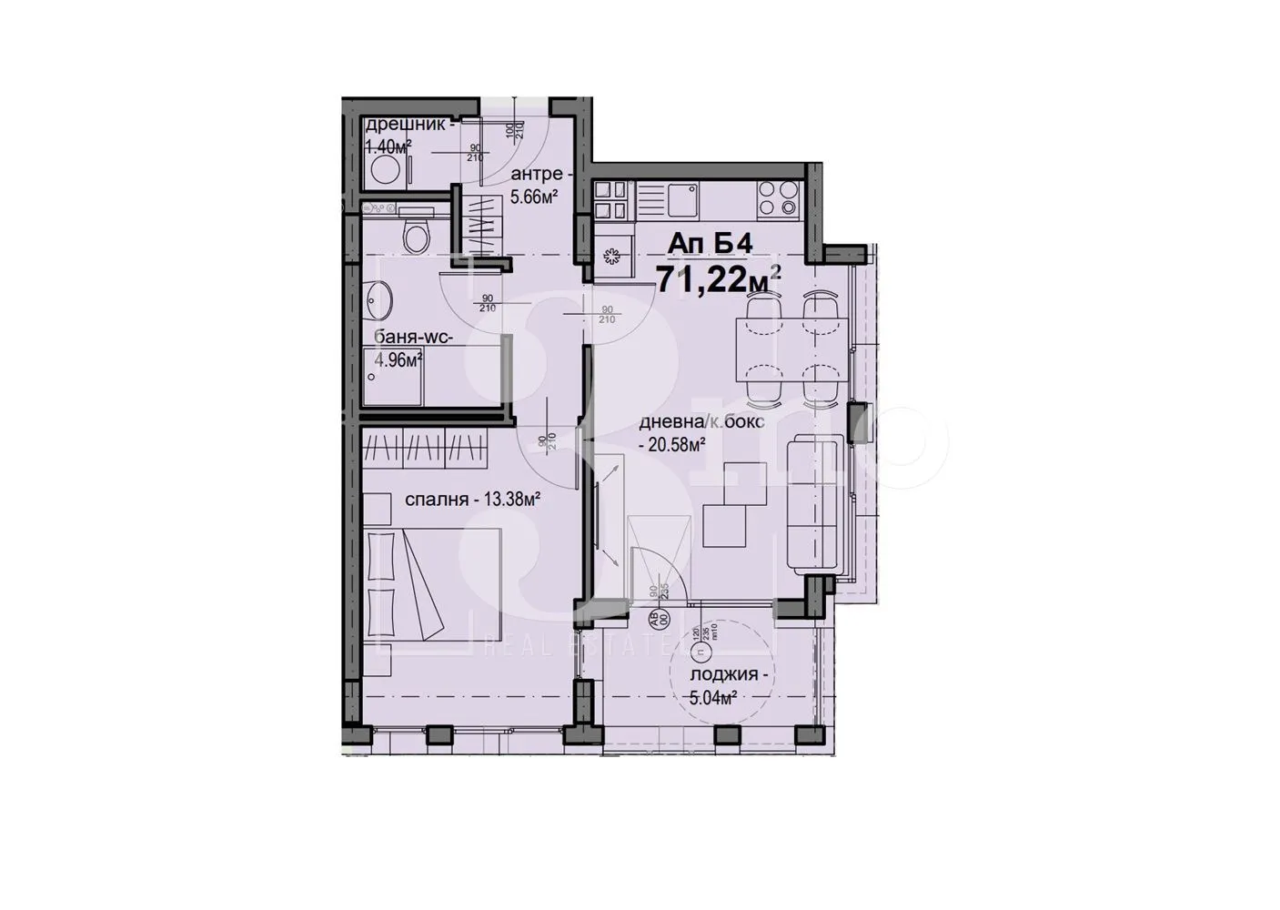 3mo Амалтея има удоволствието да ви предложи двустаен апартамент в нова модерна жилищна сграда с планирано разрешение за ползване в края на 2026-та година. Намира се в ж.к. Люлин 5 на комуникативно място. Предложеният имот е с обща площ от 71,22 кв.м. (застроена 63,35 кв.м.) и се състои от: входно антре (5,66 кв.м.), всекидневна с кухненски бокс и трапезария (20,58 кв.м.) с лоджия (5,04 кв.м.), спалня (13,38 кв.м.), дрешник/складово помещение (1,40 кв.м.), баня с тоалетна (4,96 кв.м.). Жилището е разположено на първи от общо девет етажа с изложение изток и север. Отоплението е чрез газ. Към имота може да се закупи паркомясто или гараж. Имотът е изключително подходящ за инвестиция. Инвеститорът е с богат опит, специализиран в изграждането на качествени жилищни сгради, като прилага най-новите технологии и иновации в строителството. В близост до имота са разположени търговски, хранителни и денонощни магазини и обекти, детска градина, училище и удобен градски транспорт с бърз превоз до входовете на метростанции "Люлин", "Западен парк" и "Сливница". Връзката с централната и други части на столицата се осъществява посредством бул. "Петър Дертлиев", бул. "Добринова скала" и Околовръстен път.