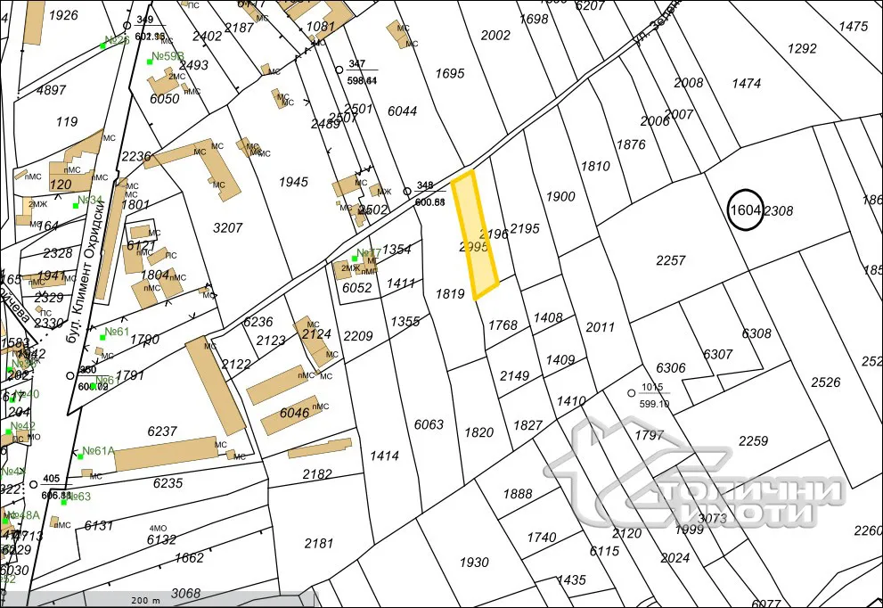 Неурегулиран поземлен имот с лице на ул. Зелена поляна в района между бул. Климент Охридски и Андрей Ляпчев. Имотът е с 13 метра лице към улицата, която в този участък не е асфалтирана. Попада основно в устройствена зона Жм2 (25% плътност, КИНТ: 0.8, к.к. 8,5 м) а малка част в югозападния край е в зона Оз1 (30%, КИНТ 1.2). Договаряне.