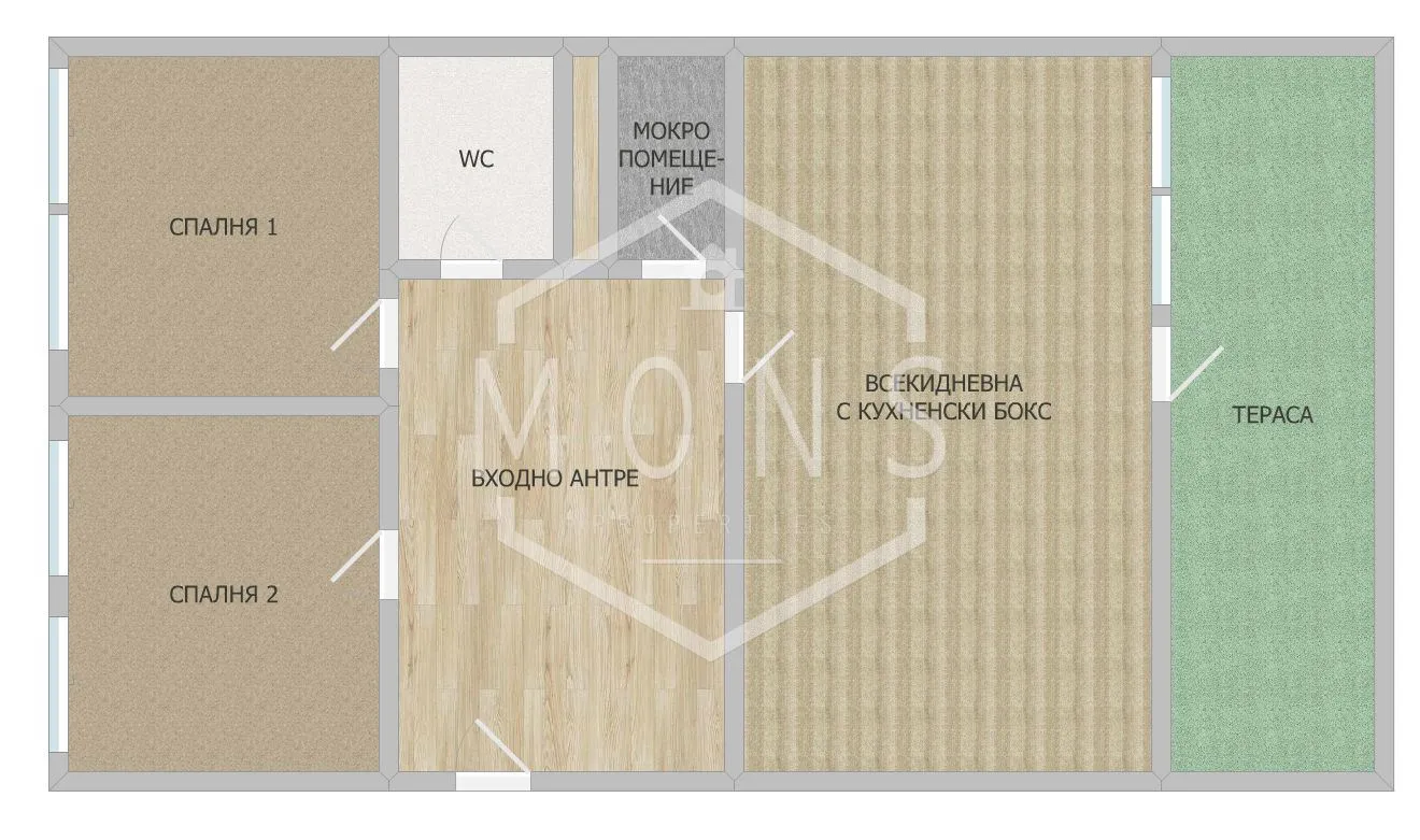 Монс Пропъртис има удоволствието да Ви представи за продажба тристаен обзаведен апартамент в гр. Велико Търново – в близост до Дворец на културата и спорта.Апартаментът е с площ от 95 кв.м.Ситуиран е на трети етаж от шестетажна тухлена сграда, построена през 2006.Разпределението е както следва:-просторно входно антре, две спални , баня и тоалетна, мокро помещение, всекидневна с кухненски бокс с излаз към терасата.Отоплението е посредством климатик.Имотът се продава с обзавеждането. За освежителен ремонт.С възможност за закупуване на самостоятелен гараж с площ от 25 кв.м, снабден с електрозахранване (ток) на цена от 29 900 евро.Към имота има прилежащо избено помещение с площ 8.02 кв.м.Удобен за паркиране на автомобил с широк вход и лесен достъп от улицата.Апартаментът се намира в отлично уреден район до:-Дворец на културата и спорта-Градски парк-Училища и детски градини-Супермаркети, аптеки, спирки на градски транспортКод на офертата: Z-0190Ние от Монс Пропъртис можем да Ви съдействаме със следните услуги:-Безплатно посредничество при кредитиранеот всички банки-Юридически услугиTwo bedroom furnished apartment in the town of. Veliko Tarnovo - next to the House of Culture and SportsMons Properties is pleased to present for sale a two bedroom furnished apartment in the town of. The apartment is for sale in Veliko Tarnovo - near the House of Culture and Sports.The apartment has an area of 90 sq.m.It is situated on the third floor of a six-storey brick building, built in 1980.The layout is as follows:-spacious entrance hall, two bedrooms , bathroom and toilet, laundry room, living room with kitchenette with access to the terrace.Heating is by air conditioning.The property is for sale with the furniture. For refreshing renovation.With the possibility to buy a detached garage of 25 sqm, supplied with electricity (electricity) at a price of 29 900 euros.Convenient for car parking with wide entrance and easy access from the street.The apartment is located in a well settled area next to:-House of Culture and Sports-City Park-Schools and kindergartens-Supermarkets, pharmacies, public transport stops