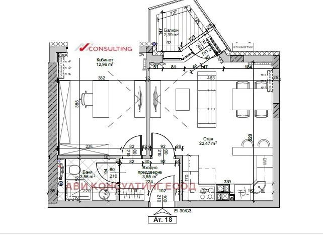 Ат.18 е с обща площ 61.55 кв.м (нетна площ 53.40 кв.), разположен на втори етаж.