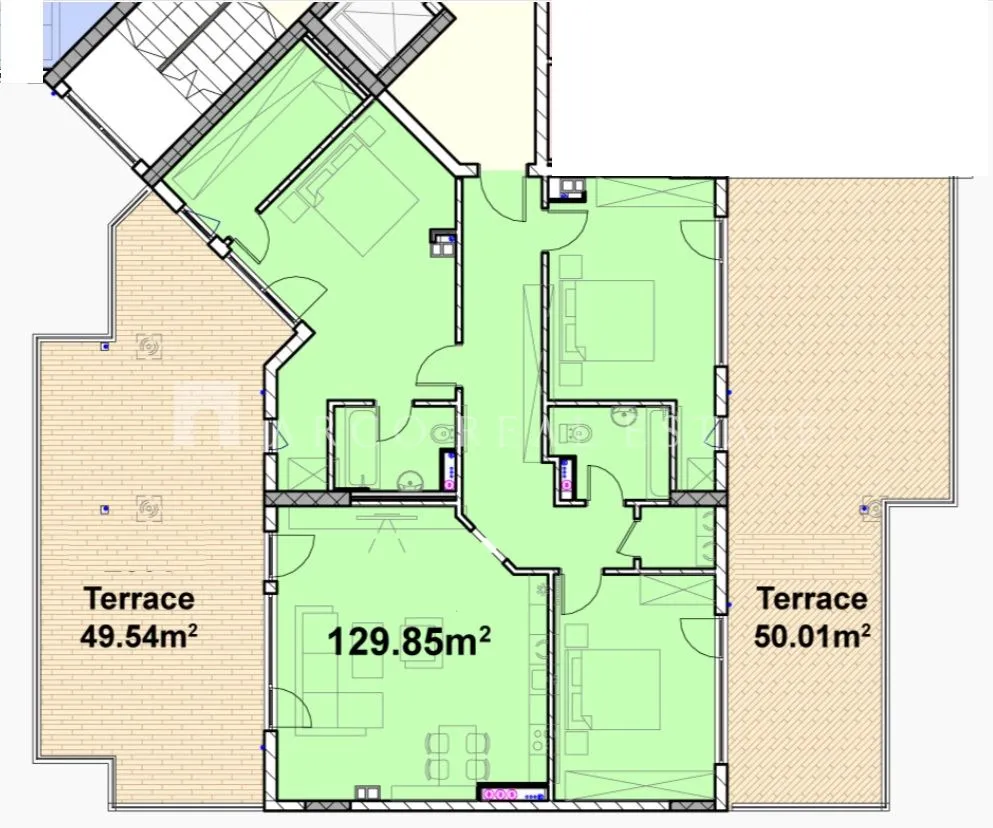 ARCO REAL ESTATE представя ЖИВОТ НА ВИСОКО НИВО: Просторен четиристаен апартамент със 100 кв.м тераси до The Mall!Търсите имот, който не прави компромис с пространството? Представяме ви просторен четиристаен апартамент – истинско бижу на 9-тия етаж, където градът е в краката ви!☀️ Изложение: Юг / Изток / Север – светлина от изгрев до залез!✨ Какво прави този дом уникален?💎 Две панорамни тераси (общо 100 кв.м) – Вашата лична градина, зона за барбекю или външен фитнес под небето. Пространство за релакс без аналог!💎 Простор и комфорт: Огромна дневна (близо 42 кв.м) и три големи, светли спални.💎 Локация-мечта: На крачка от Sofia Tech Park и The Mall, с бърза връзка до центъра и летището.📐 Детайли:Етаж: 9 от 10 (панорамни гледки и тишина).Застроена площ: 129.05 кв. м., площ с общи части: 158.59 кв.м.🏠 Функционално разпределение (по архитектурен план):Апартаментът е проектиран с изключително внимание към комфорта и светлината:Дневна с трапезария и кухня: Огромно отворено пространство (41.90 кв. м) с френски прозорци и излаз към голяма панорамна тераса.Родителска спалня: Светла и просторна (17.15 кв. м) със самостоятелна баня с тоалетна (4.10 кв. м).Втора спалня: Просторни 15.65 кв. м с лесен достъп до санитарните възли.Трета спалня/Кабинет: 12.45 кв. м, идеална за детска стая или работно пространство.Тераси: Две идентични тераси по 50.01 кв. м и 49.57 кв. м, които обгръщат имота.Коридор: Функционално антре (12.65 кв. м), свързващо всички помещения.Допълнителни удобства: Втора баня с тоалетна (4.00 кв. м), отделна тоалетна за гости (2.35 кв. м) и склад (2.30 кв. м).✨ Защо този имот е специален?Височина и Гледка: 9-тият етаж осигурява панорама, която остава открита, далеч от шума на улицата.Пространство под открито небе: Терасите са естествено разширение на Вашия дом.Инвестиционен потенциал: Район с постоянно растяща стойност.Сграда: Пред Акт 16, модерно строителство с ТЕЦ и климатизация.🚗 Възможност за закупуване на паркоместа.Не пропускайте шанса да притежавате един от най-впечатляващите имоти в района!Обадете се и заявете час за оглед: Ралица Стойчева 0878 63 46 95 Оферта № 106332Допълнителни услуги: Предлагаме пълно съдействие за ипотечно кредитиране и изготвяне на професионална пазарна оценка на имота.Агенцията работи по изискванията на БДС EN 15733. Предлагаме съдействие за ипотечно кредитиране и изготвяне на пазарна оценка на имота. Ралица СтойчеваИмейл: ralitsa.stoycheva@arcoreal.bgТелефон: 0878 634 695