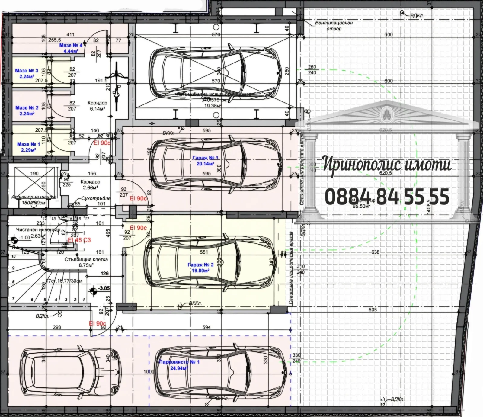 Възможност за закупуване на ГАРАЖИ и ПАРКОМЕСТА в сградата.