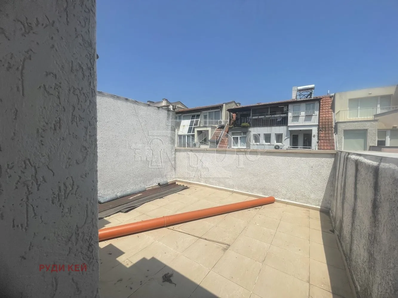 РУДИ КЕЙ предлага двустаен апартамент, тип мезонет, находящ се на 4-ти етаж, в пет етажна сграда в непосредствена близост до Окръжна болница. Състои се от коридор, дневен тракт, спалня, санитарен възел и две просторни тераси. Към жилището няма маза.