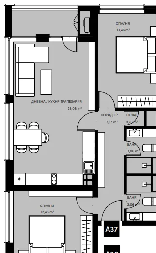 Многофамилната жилищна сграда е проектирана на девет надземни нива и две подземни нива. На партерно ниво са обособени два магазина и жилище за хора с увреждания, а на първия етаж са разположени четири офиса и три двустайни апартамента. За самостоятелните обекти, предвидени за обществено – обслужващи дейности, е осигурен самостоятелен достъп. На втория етаж са проектирани пет двустайни и един четиристаен апартамент. На всички типови етажи са обособени по четири двустайни и три тристайни апартамента. На последния етаж са проектирани две четиристайни жилища. В повечето жилища са предвидени складови помещения. Осигурени са допълнителни складове в двете подземни нива за апартаментите, които нямат складове в тях. Осигурени са общо 69 броя паркоместа – 62 бр. в подземния гараж /57 гаража и 5 паркоместа/ и 7 броя открити паркоместа /две от които са двойни/ с директен достъп от улицата. В първи сутерен са разположени 30 паркоместа, а във втори сутерен – 32. Транспортно – комуникационния достъп до първият подземен гараж е осигурен посредством покрита рампа с максимален наклон от 15%. Връзката между двата сутерена се осъществява посредством две рампи с наклон 13%. За пешеходен достъп и евакуация са предвидени четири разсредоточени изхода на всеки подземен етаж. Заложени са18бр. велосипедни паркоместа. Паркингът ще бъде изпълнен с настилка от шлайфан бетон и стени от видим бетон, с допънителни архитектурни решения и пътна сигнализация и осветление, които ще гарантират безпроблемното функциониране на зоните за паркиране.