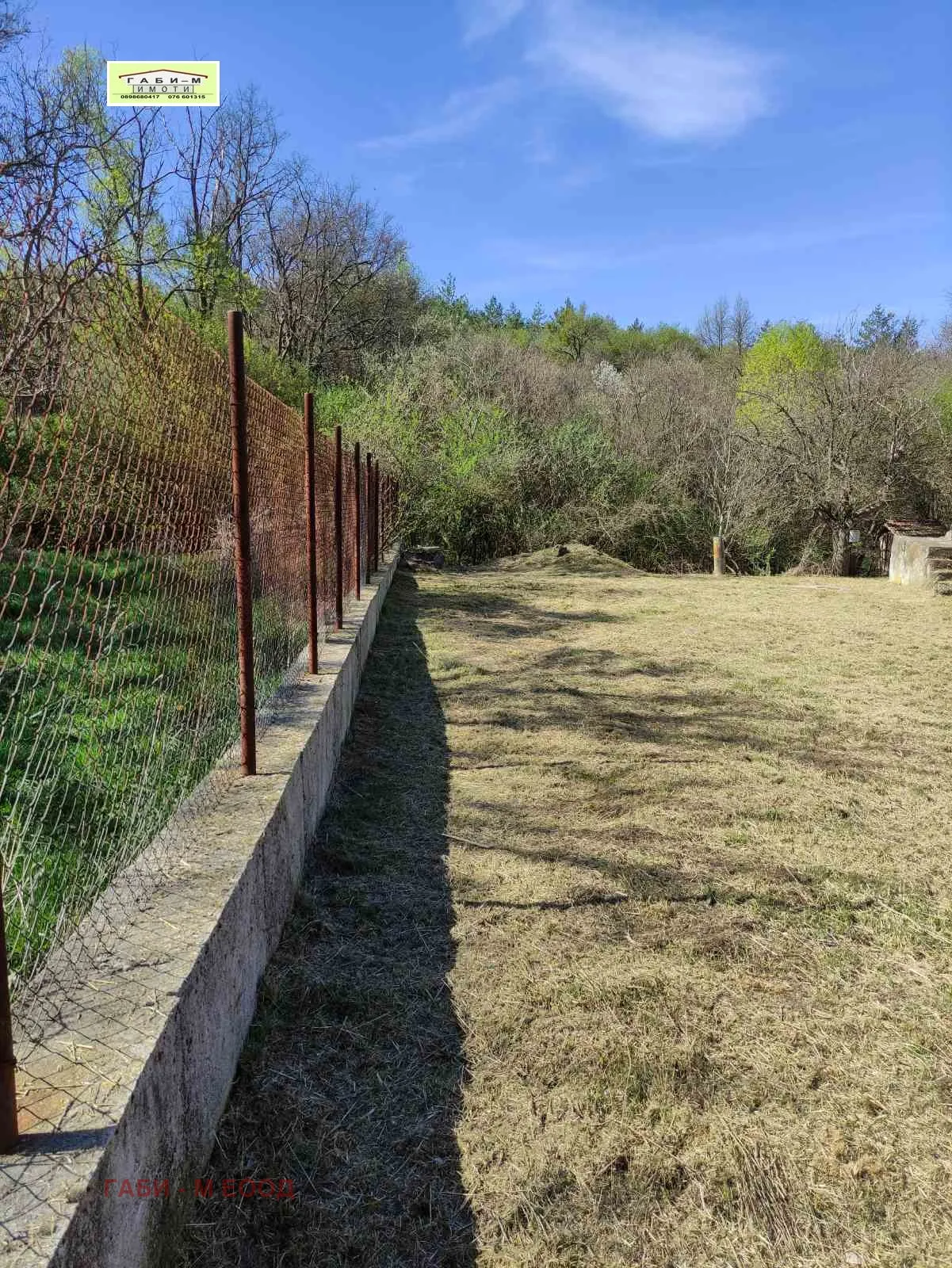 Оградата е бетонови колове и мрежа,върху бетонова основа.