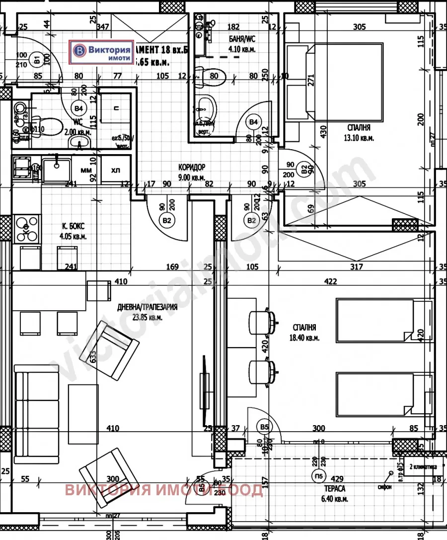 Самото жилище е разположено на втори етаж с обща квадратура от 115.72 кв. м., от които 95.65 кв. м е чистата жилищна площ ,2.63 кв. м е избеното помещение, а 17.44 кв. м. са ид. ч. на сградата. Апартаментът е с изложение Юг/Изток предлагащ се на шпакловка и замазка като включва дневна с кухненски бокс в един обем, спалня с излаз на тераса, коридор, втора спалня, баня-тоалетна, отделно тоалетна и тераса. Жилището е просторно и светло, което лесно би го превърнало във Ваш уютен дом. Сградата ще бъде въведена в експлоатация т.е. с наличен Акт 16 през декември 2025 г.