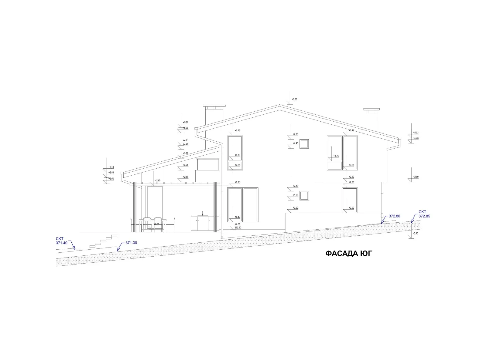 Етаж 2: 2 самостоятелни спални, едната със собствена голяма гардеробна, баня с тоалетна и складово помещение, тераса.