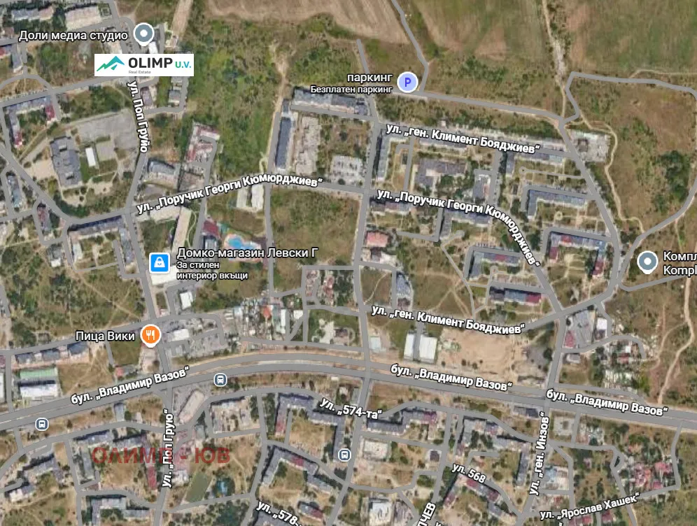 Парцелът попада в район във влязъл в сила ПУП по чл.16. Имотът има лице на две улици, с удобен достъп и отлична видимост, и се намира в район с динамично развитие в близост до бъдеща метростанция, спортна зала, големи търговски обекти и жилищни сгради.