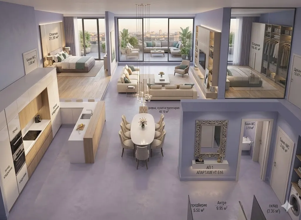 Имотен Център България предлага Тристаен апартамент в модерна сграда с луксозна фасада на 9 етажа.