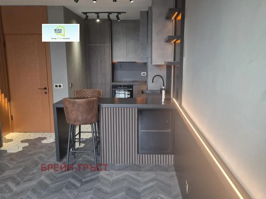 Жилището е с площ от 72 кв.м и се предлага напълно обзаведено, а интериорът е изпълнен по дизайнерски проект, с декоративни мазилки, стилна мебелировка и осветление, създаващи комфортна атмосфера.