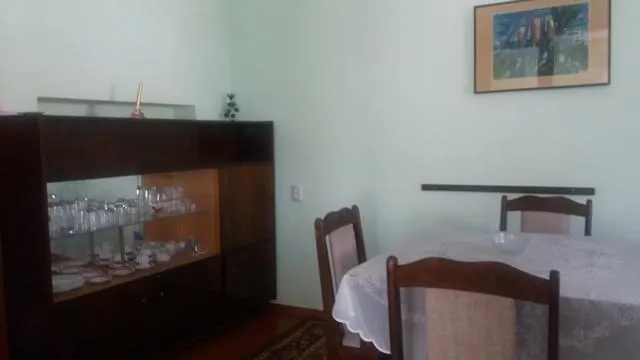 Продава се просторен втори етаж от къща, намираща се в центарната частна града. Квадратурата е 111 кв.м. Етажът представлява антре, от което се влиза в голяма, просторна , ъглова трапезария, към която има кухненски бокс. В кухненската част има печка, хладилник и пералня. В трапезарията - голям ъглов диван, канапе, и голяма елепсовидна маса. От антрето се влиза в две стаи, които са преходни. В едната има маса със столове и шкаф, а в другата две легла и шкаф. Следващото помещение е спалня, която е самастоятелна и е обзаведна със легло спалня, нощни шкафчета, тоалетка и гардероб. Етажът има две тераси, едната е южна , другата западна. Банята е отделно от тоалетната, в която се влиза през мокро помещение. Към имотът има ½ от таванските помещения, от мазата и на двора има лятна кухня. Жилището е с много прозорци, с хубава дървена дограма, светло, просторно и топло. През зимата отоплението е решено с конвекторни печки във всяко помещение / стая /. Имотът се продава с наличното обзавеждане . Цена е 85 000 евро .