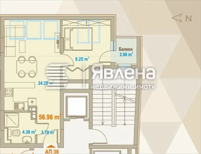 До основни пътни артерии, градски транспорт и две метростанции! На пешеходно разстояние от центъра на столицата. Предлагаме за продажба изключително стилен и функционален двустаен апартамент (ап. 35) в модерна и елегантна жилищна сграда, от висок клас, разположена на ключова и комуникативна локация в широк център на София. Сградата впечатлява с елегантна архитектура, изчистени линии и висококачествени материали. В строеж, на ранен етап. С най-иновативни материали, вкючително тухли Wienerberger и висок клас PVC. Гарантирана отлична енергоефективност на сградата, посредством най-висок клас дограми, фасадни облицовки и топлоизолации от водещи производители, осигурява ниски сметки на отопление и електривеството. Сградата се отличава със стилна и съвременна визия, като хармонизира с градската среда. Външното LED осветление подчертава формите и създава усещане за престиж и сигурност. Общите части са луксозно изпълнени, входът е представителен, а околността – тиха и добре поддържана. Намира се в близост до търговски вериги, училища, детски градини, здравни заведения, ресторанти и кафенета, магазини, супермаркети и мол София. Параметри на апартамента: Обща (чиста) площ: 56.96m². С общи части: 78.71m². Етаж: 13ти в модерна многоетажна сграда от 14 етажа. Крайна цена: 202 800 евро. Цената включва ДДС. Изложение: запад, с отлично естествено осветление през целия ден. Балкон: 3.95 m² – идеален за сутрешно кафе или малка градина с растения. Разпределение: Просторна дневна с кухненски бокс – 22.50 m². Отворено пространство, подходящо за кът за почивка, трапезария и модерна кухня. Големите прозорци осигуряват светлина и усещане за простор. Спалня – 13.67 m². Комфортна и добре пропорционирана стая, подходяща за голямо легло и гардероб. Антре – 6.89 m². С възможност за вградени шкафове и удобно съхранение. Баня – 2.84 m². Компактна и функционална, с възможност за поставяне на душ кабина. Склад/ниша – 1.69 m². Идеално място за пералня, сушилня или допълнително съхранение. Предимства на имота: Нова и висококачествена сграда. Модерен дизайн и първокласни материали. Светъл и функционален апартамент с оптимално разпределение. Топ локация, подходяща както за живеене, така и за инвестиция. Предлагат се и довършителни работи за привеждане на имота до ключ, с доплащане. Възможно е и покупката на паркомясто (30 000-35 000 евро) или гараж (45 000 евро). За оглед и повече информация, свържете се с Надежда Цолова.(http://www.yavlena.com/165104) ID:Z-165104