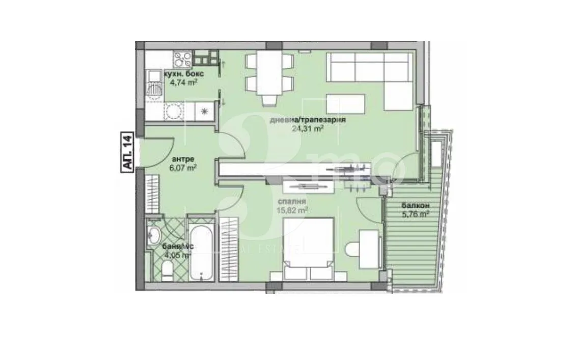 София Люлин 6 Двустаен апартамент