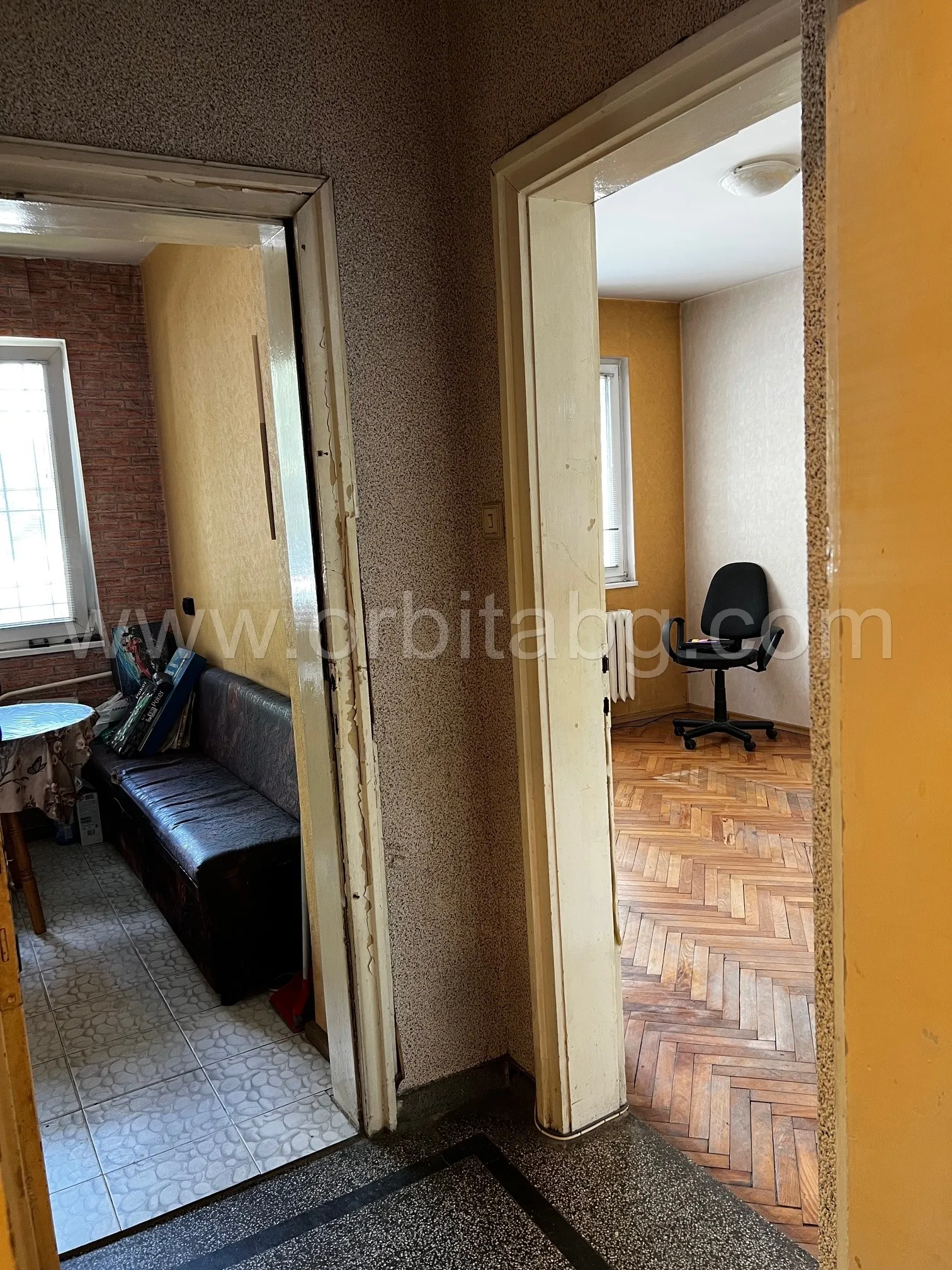 Агенция Орбита предлага за продажба двустаен апартамент в тухлен блок от 60-те години.
