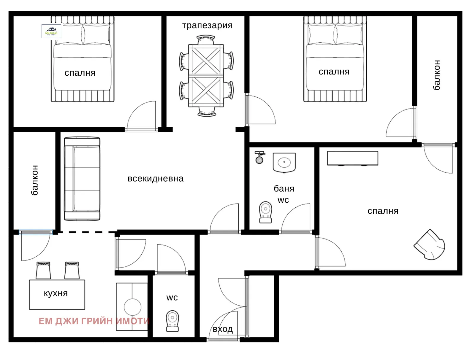 Жилището разполага с функционално пространство, което позволява преустройство според визията и нуждите на новите собственици.