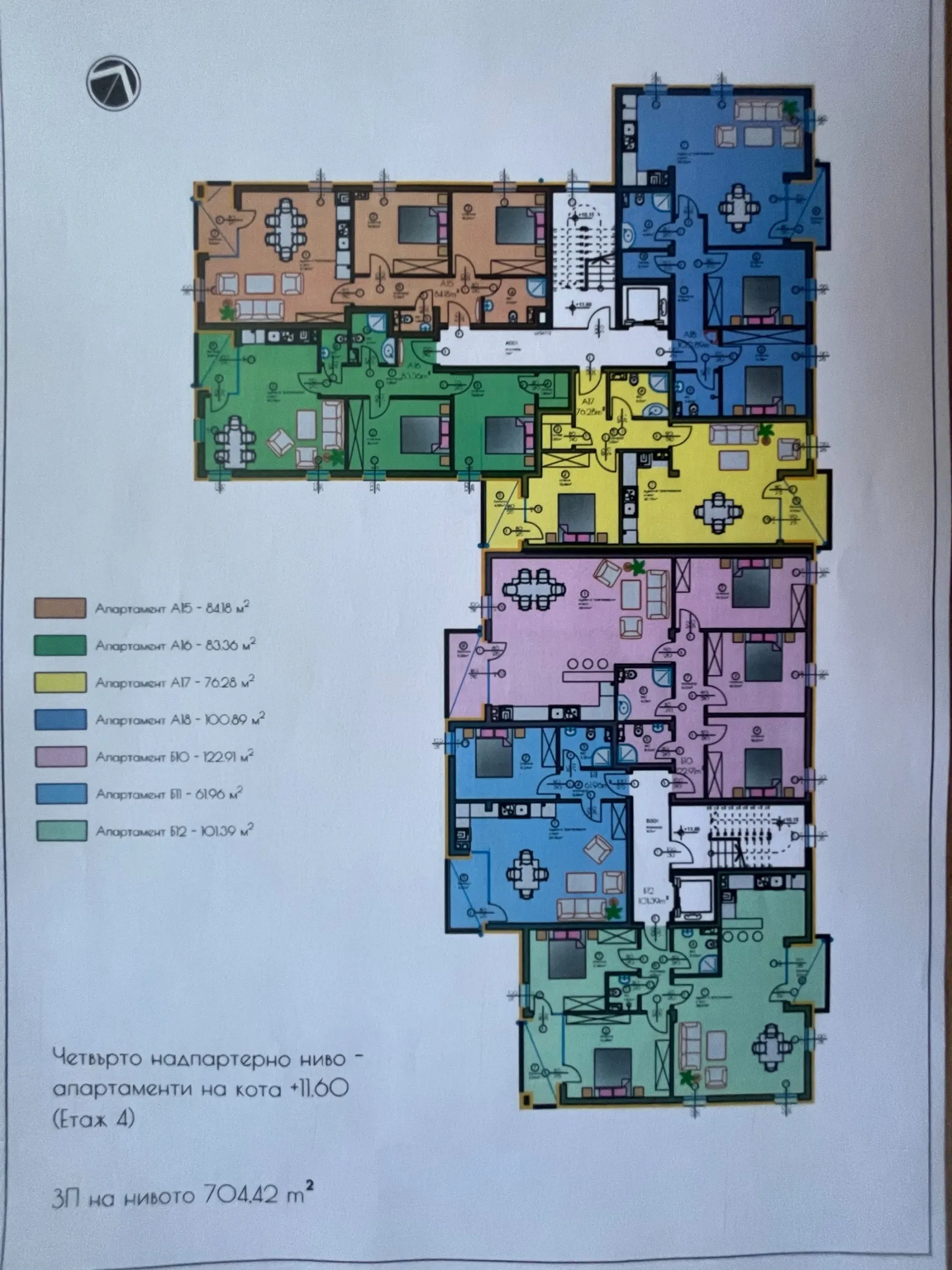 Апартаментите по обявата са на втори и трети етаж с квадратура 83,36, състоящи се от всекидневна с кухненски бокс и трапезария, две спални, баня с тоалетна, тоалетна, коридор, склад и тераса. На трети и четвърти етаж с квадратура 101,39 състоящи се от всекидневна с кухненски бокс и трапезария, две спални, баня с тоалетна, тоалетна, коридор и две тераси. Издават на шпакловка и замазка, блиндирана входна врата.