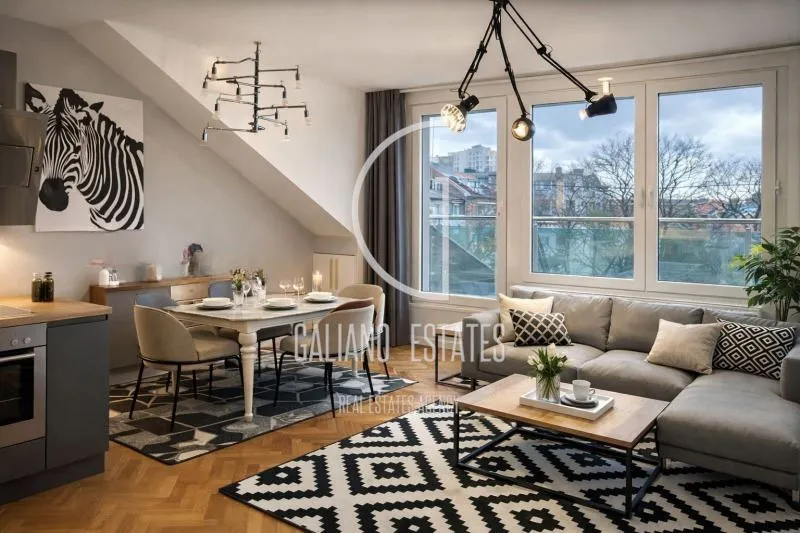 Galiand Estates Ви представя стилен, напълно завършен апартамент, отличаващ се с модерна архитектура, функционално разпределение и впечатляваща светла височина от 278 см, която създава усещане за простор и въздух.Имотът е решен в индустриално-модерен стил с бетонни акценти, висок клас материали и дизайнерски детайли. Просторната дневна зона (~45 кв.м.) тип open space обединява хол, трапезария и кухня, а характерната камина придава уют и индивидуалност на пространството.📐 Разпределение:Просторна дневна с кухня и трапезария (~45 кв.м.) с каминаРодителска спалня с огледални гардеробиДве детски стаиСтилна основна баня с качествени облицовкиВтора баня с гранитогрес тип оникс и оборудване Grohe и Hansgrohe🌅 Изложение:Дневна – западСпални – изтокВсекидневната предлага приятна гледка към голяма озеленена градинка с детска площадка и външен фитнес.Кухнята е функционална, с висок клас уреди и изчистен, модерен дизайн.📍 ЛокацияИмотът се намира в кв. Гео Милев, гр. София – една от най-предпочитаните и утвърдени жилищни зони на столицата.Районът се отличава със спокойна атмосфера, зелени пространства и отлична инфраструктура. Апартаментът е на метри от новострояща се метростанция, което гарантира бърз достъп до централните части на града и допълнително повишава инвестиционната стойност на имота.В непосредствена близост ще откриете:✔ Магазини и супермаркети✔ Училища и детски градини✔ Основни пътни артерии✔ Паркови пространстваИмотът е отлично поддържан, готов за нанасяне и не изисква допълнителни инвестиции. Подходящ е както за лично ползване, така и за отдаване под наем от висок клас или дългосрочна инвестиция.Galiano Estates - стилът има адрес!Оферта:6756