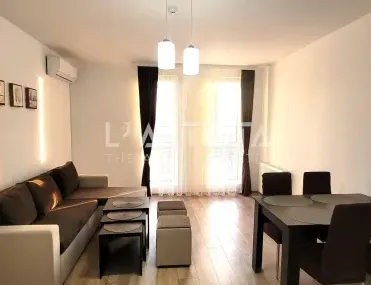 L"Artista отдава нов обзаведен двустаен апартамент със застроена площ от 54.33кв.м.Реф.№ Z-Z-1170Състои се от : антре, дневна с кухненски бокс и трапезария, спалня с балкон и баня с тоалетна.Предлага се напълно обзаведен. Отопление с климатици. Топла вода на бойлер. Изложение югозапад. Прекрасна гледка към планината.Жилището е в нова сграда с модерни общи части, асансьор и хубав озеленен двор.Към апартамента има и открито паркомясто.L'Artista е първата агенция в България, която предлага не само посредничество при покупко-продажба на недвижими имоти, но и широк спектър от финансови услуги - кредитиране, застраховане, инвестиционни фондове, пенсионно осигуряване и други, които осигуряват стабилност за Вашето бъдеще.Намерете всичко, от което се нуждаете за вашите имоти и финансова сигурност на едно място.
