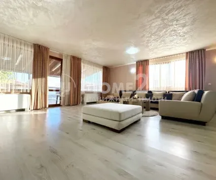 - Разпределение: Просторен хол с кухненски бокс, две големи спални, баня с тоалетна, входно антре и две тераси. Към апартамента има таванско помещение 5кв.м и мазе ( офис ) 10кв.м.