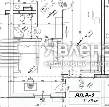 Входно антре, от което се осъществява достъп до всички помещения, а именно: просторен коридор, три самостоятелни стаи, отделна кухня и баня с тоалетна.